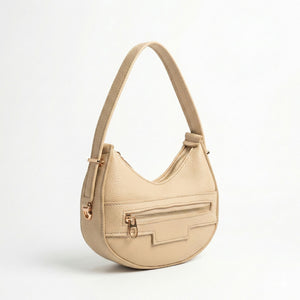 Yeh sleek aur stylish half-moon bag rozana ke istemal ke liye behtareen hai. Iska compact design aur secure zips isay classy aur functional banatay hain.