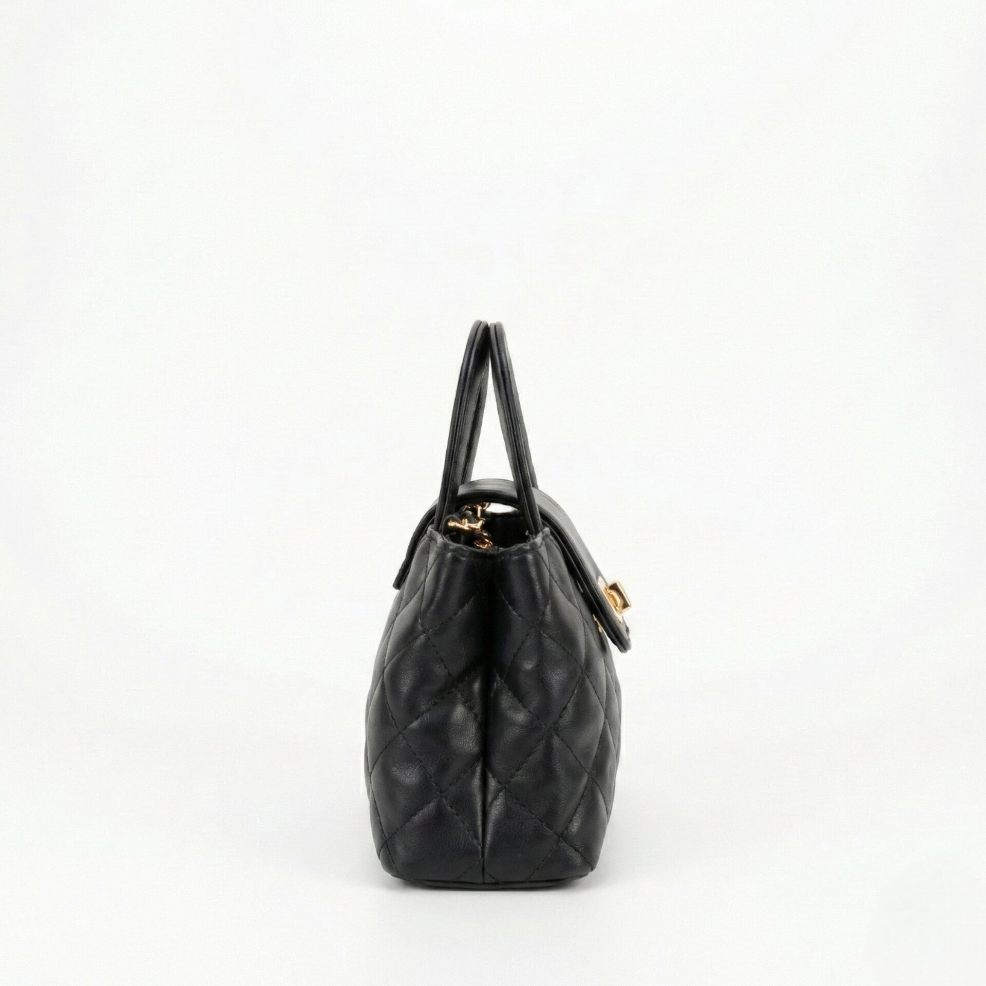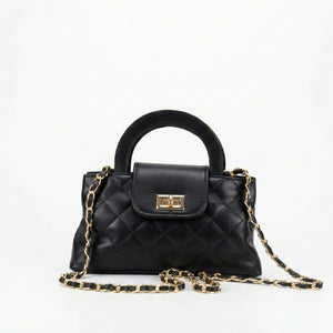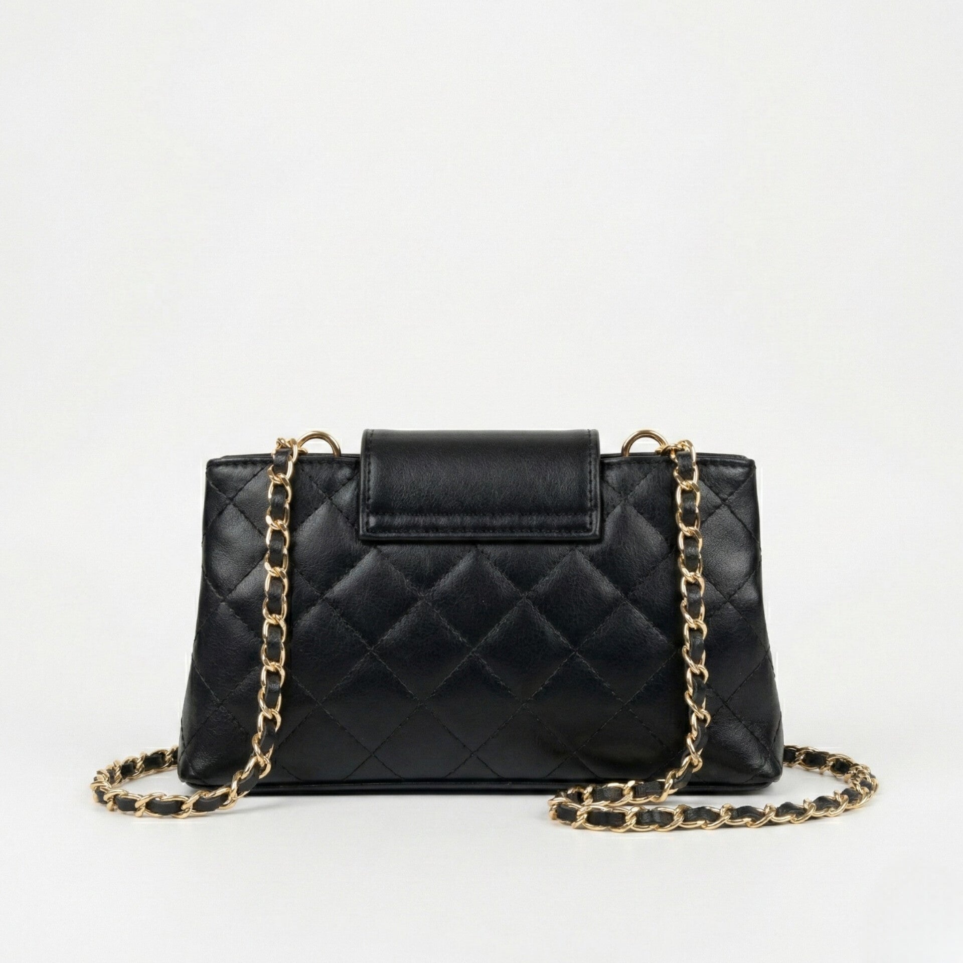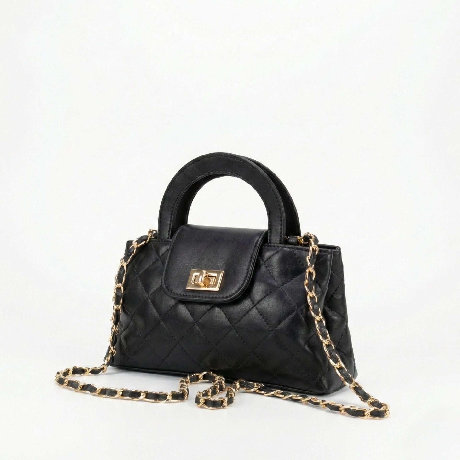 Apne style ko naya look dein is sophisticated Quilted Handle Bag ke saath. Yeh bag na sirf dekhne mein khoobsurat hai balkay apni double partition ki wajah se kaafi space bhi provide karta hai. Iska quilted design aur gold-tone twist-lock ise har event ke liye perfect banata hai.