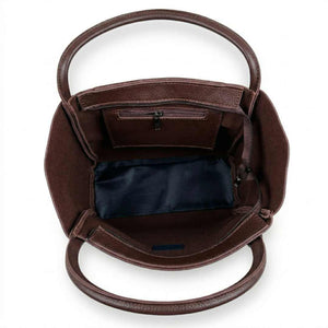 The Jadel Large Tote is a spacious, structured everyday bag designed for the woman who carries her world with her — from the office to errands and everything in between. Made from premium vegan leather in a rich dark brown, it holds its shape beautifully without weighing you down.