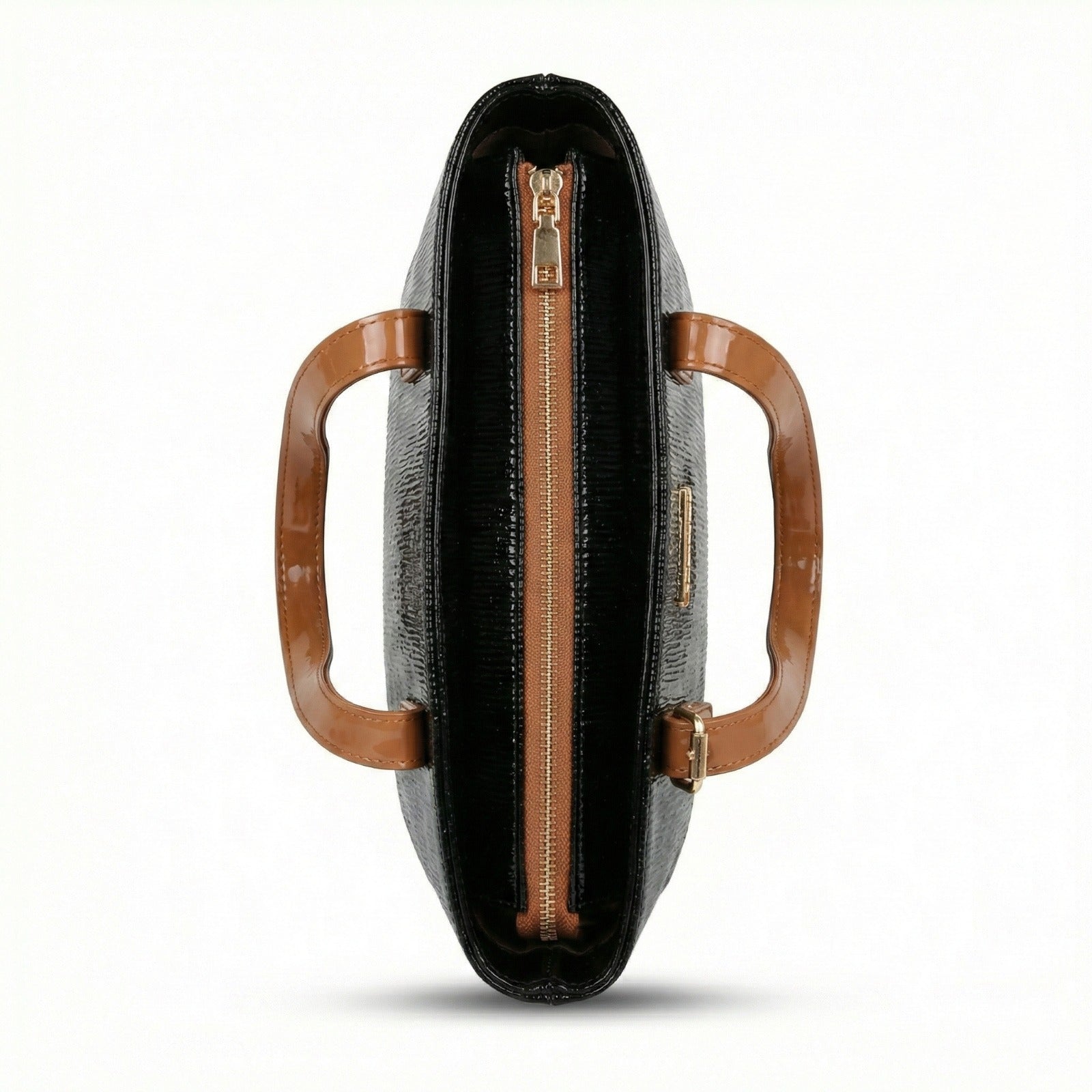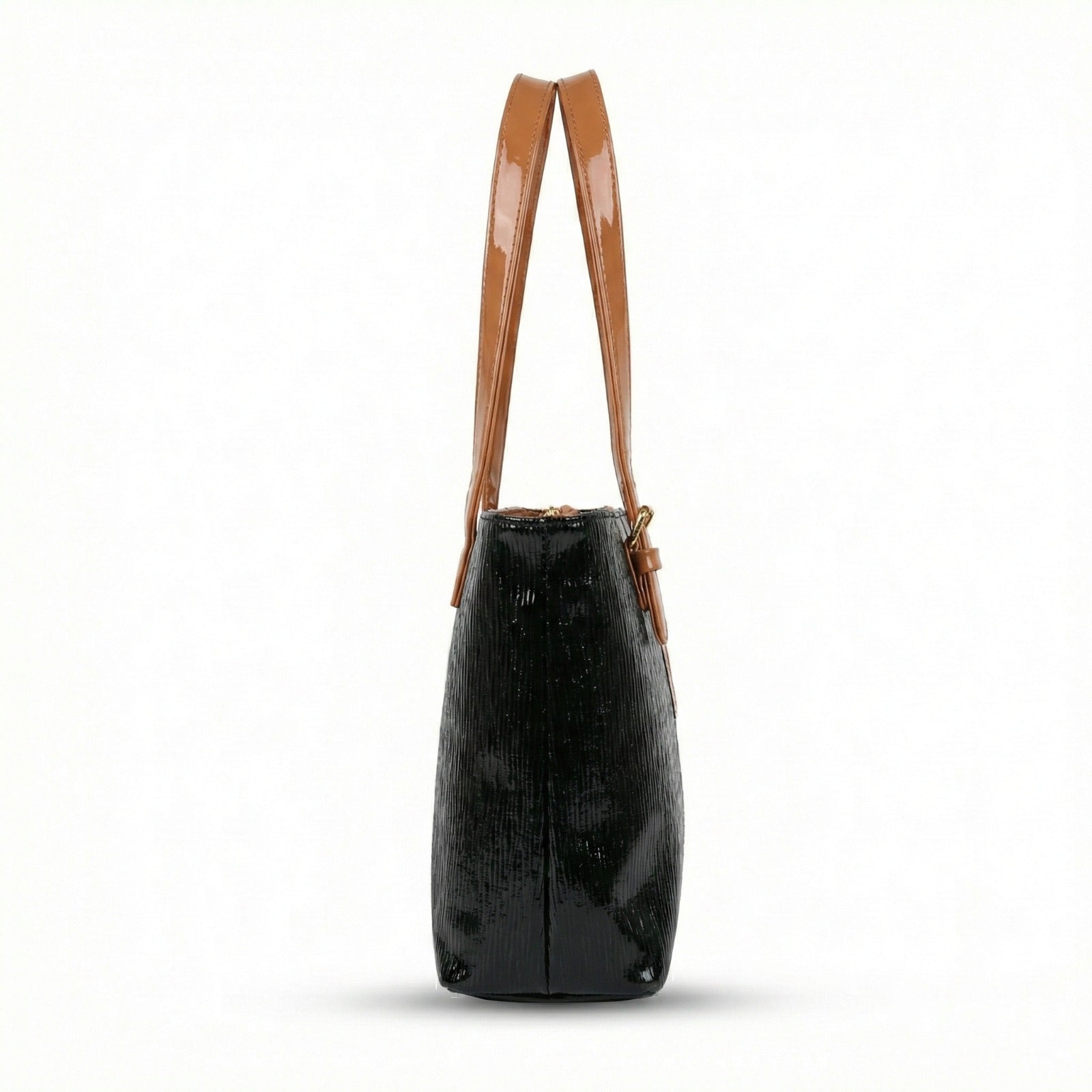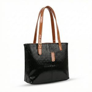 A perfect blend of function and flair. This bag features a unique wavy embossed texture paired with high-shine blue patent handles for a sharp, sophisticated contrast.