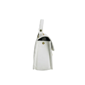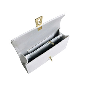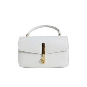The ELARA represents a perfect harmony of minimalist structure and bold hardware. This sleek black handbag is defined by its smooth finish and a striking vertical gold-tone bar closure, offering a look that is both timeless and commanding.